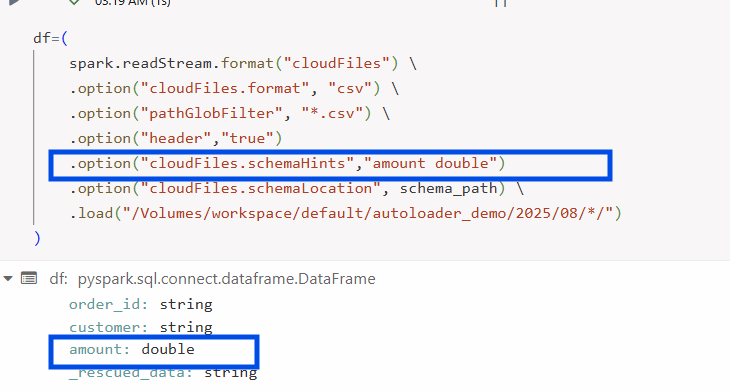 As we have already set the path for the schema location and checkpoint location, we will make use of those paths for schema storage.