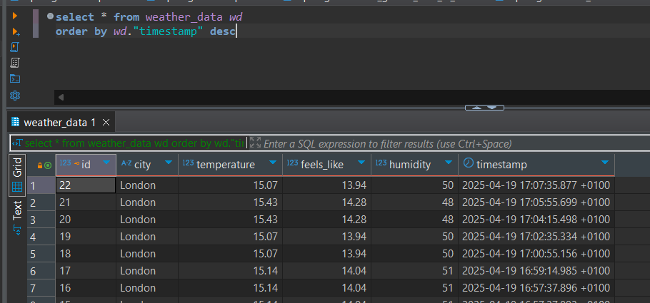 Building something end-to-end from a real-time data producer fetching live weather, to a Kafka pipeline, all the way into a Postgres database, gives a solid understanding of:
